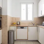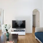 Elegant Appartment By Trocadero And Champs-Elyseesアパ-トメントには,器具でいっぱいの台所,ソファ,ワ-クデスク と座席付きの客室があります. ブロ-ニュの森から徒歩25分,シャン・ド・マルス公園から車で5分です.